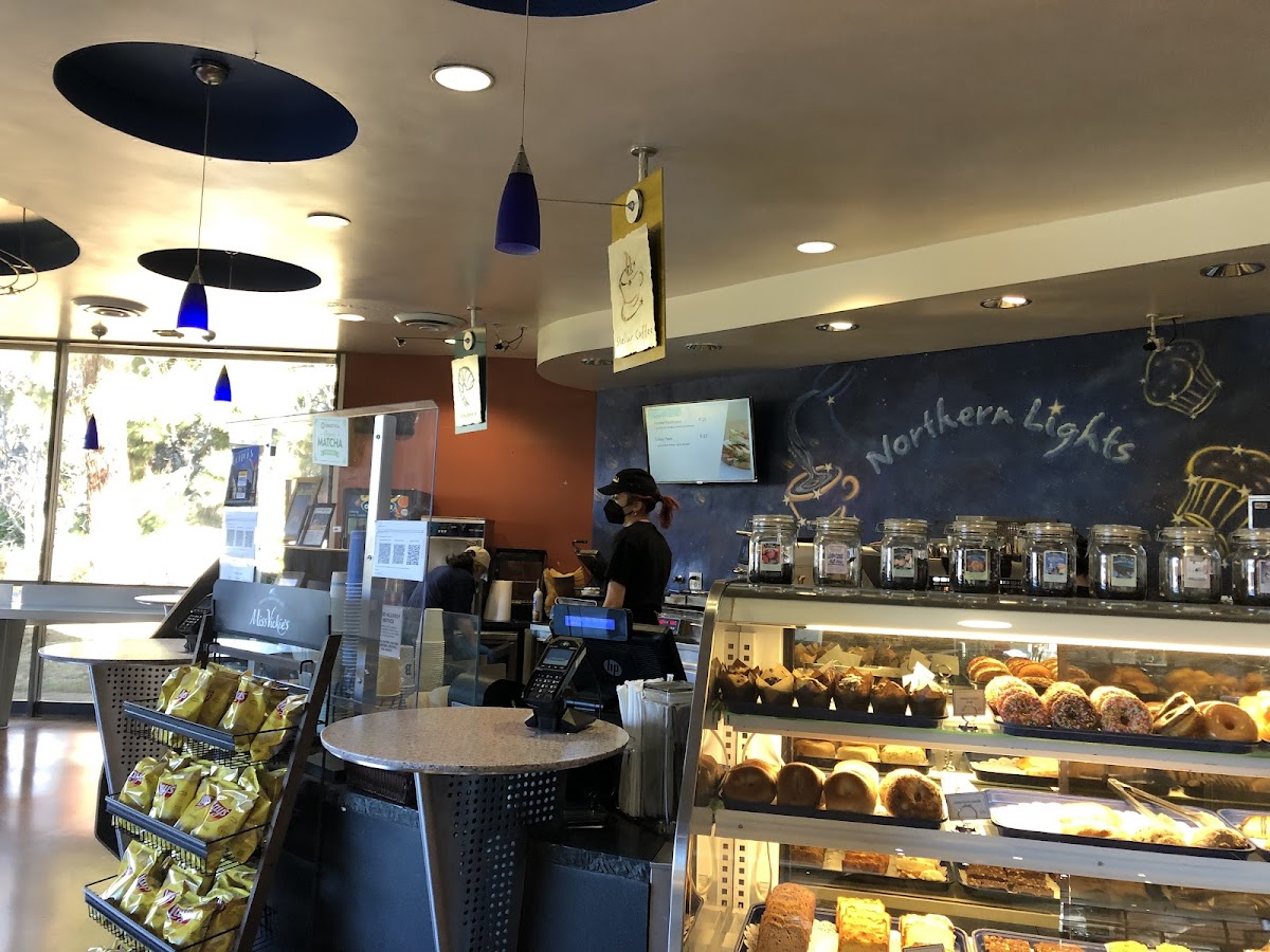 Northern Lights Cafe is a nice spot on the north end of UCLA campus where you can get some yogurt, coffee and other treats. Also has a little fireplace for those chilly days! Connected to the north campus student center where a broader menu of prepared foods and a salad bar provides additional options for chow time.