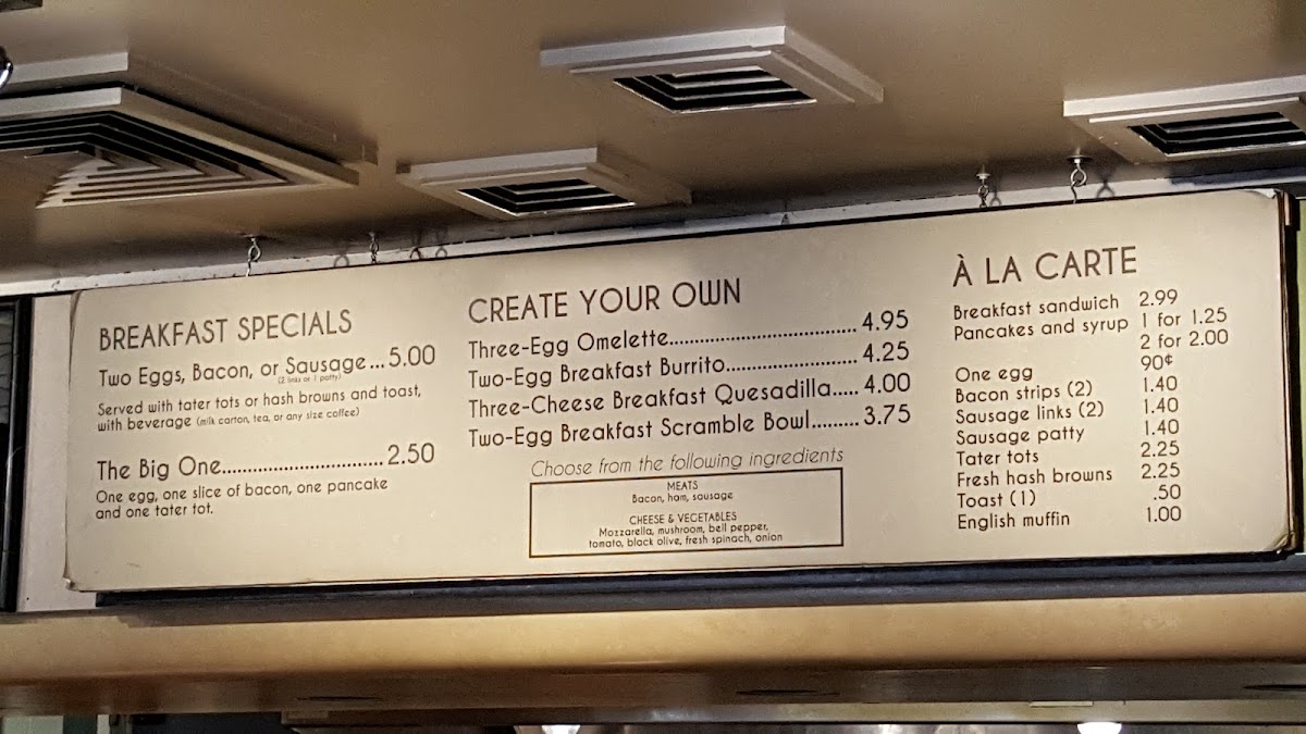 Drinks play a key role in the experience here, with iced lattes and other coffee selections fitting naturally into the lively, student-focused atmosphere. The menu matches well with the warm, welcoming space — ideal for settling in with a hot drink near the fireplace or quickly grabbing a bite between classes.
